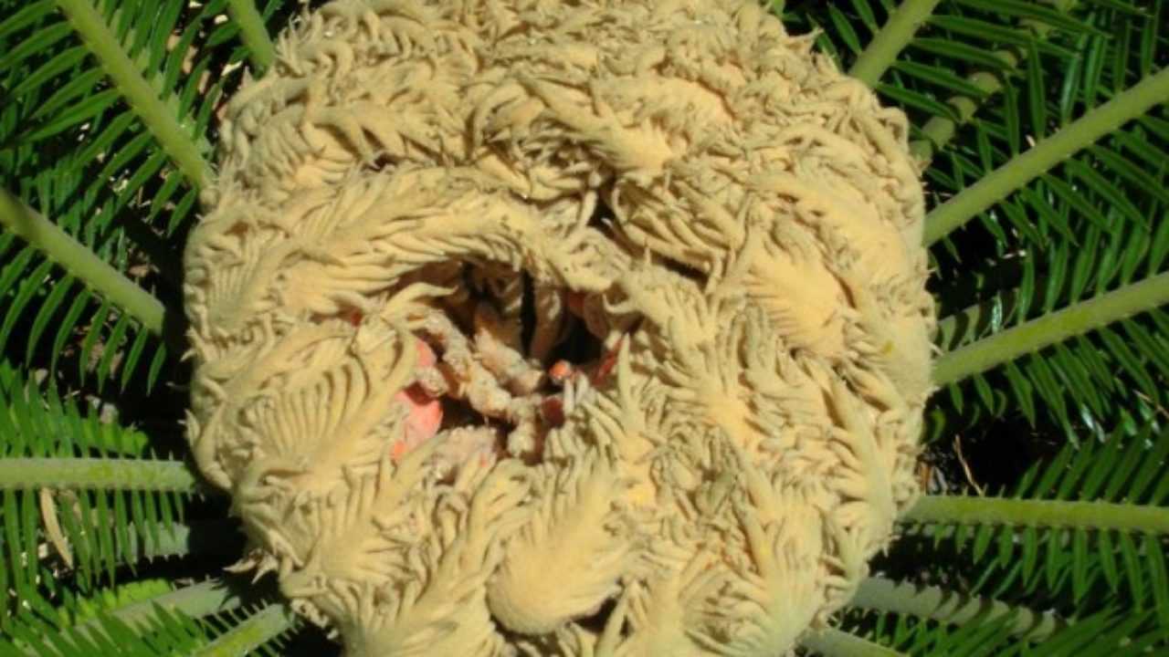 Riproduzione della cycas o cicas. Le cycas sono piante dioiche ovvero esistono esemplari maschio abbastanza rari ed esemplari femmina piu comuni.